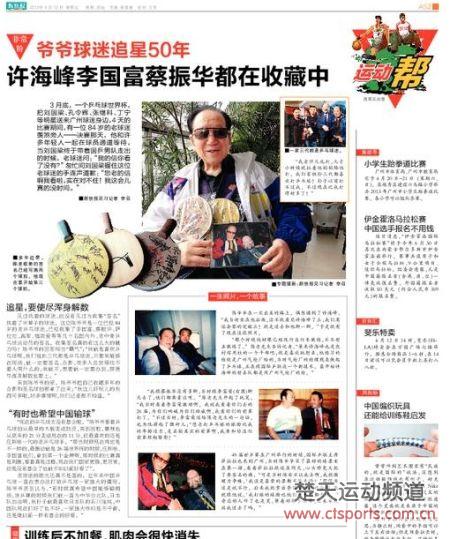 4月13日消息,3月底,一个乒乓球世界杯,把刘国梁、孔令辉、张继科、丁宁等明星送来广州球迷身边,4天的比赛期间,有一位84岁的老球迷羡煞旁人——决赛那天,他和许多年轻人一起在球员通道等待,当刘国梁终于带着国乒男队走出的时候,老球迷问:“我的信你看了没有?”匆忙间刘国梁握住这位老球迷的手连声道歉:“您老的信啊我看啦,实在对不住!我这会儿真的没时间。”