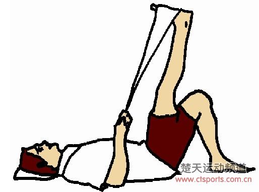 运动保健-1月4日消息,想要达到拉脚筋的目的,很简单,一条拉伸绳或者毛巾就可以帮你达到目的,根据下面的动作,一起来热热身吧。用一条拉伸绳或者绕圈的毛巾,做直腿脚筋拉伸(如上图),尝试将一条腿与身体成90度,保持几秒钟,然后换腿。