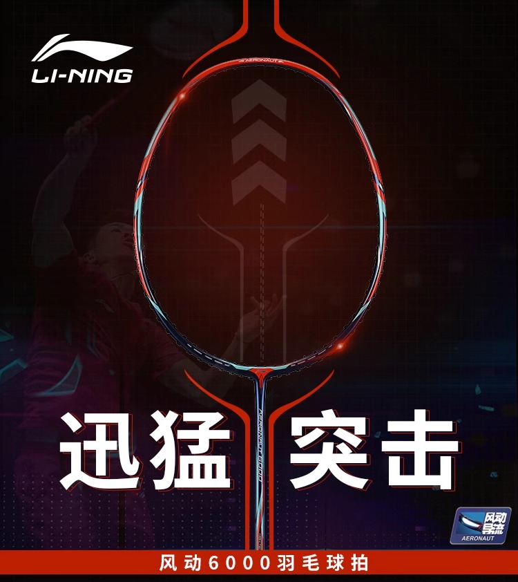 李宁羽毛球拍风动6000/风动6000C/风动6000D/风动6000I 两孔风动设计球速更快