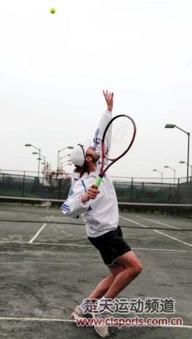 六、网球上旋球——让你的发球更有威力:挥拍到达最高点时展开身体,注意随挥动作