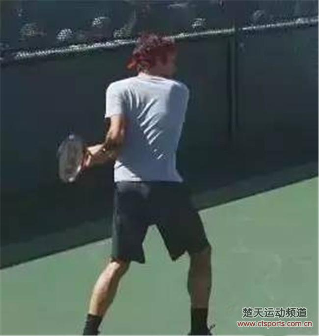 旋转拍子,使拍头产生巨大角速度,击球时拍头指向左侧,说明拍子已经水平转动了180度,这是击球能量的来源。